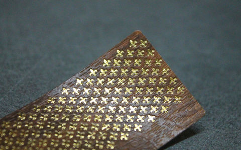 La dorure à chaud et le gaufrage (réalisation avec un outil spécifique) pourrons venir sublimer certains éléments. Nous avons également un système de dorure numérique (or ou argent) qui ne demande pas de frais d'outil.